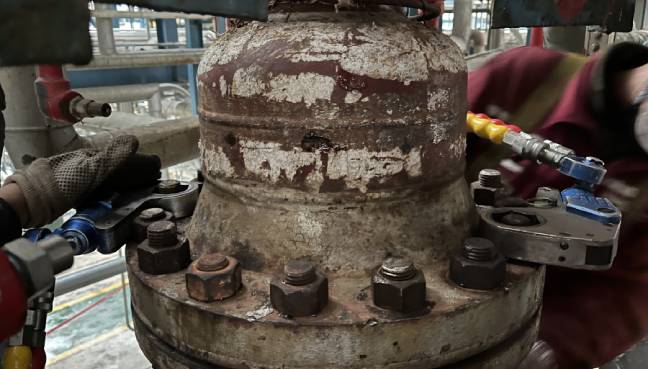 經(jīng)常干檢修安裝的人都知道,無論你用什么液壓扳手、電動扭矩扳手、手動扭矩扳手、氣動扭矩扳手等扭矩工具來緊固法蘭螺栓都會出現(xiàn)你在緊這邊那邊緊過的螺栓又松了的情況。這是因為螺栓受到應力影響,所以才會出現(xiàn)這個緊了那邊又松了的情況。也就是說如果我們預緊時采用一次100%的預定力矩去打法蘭螺栓越晚打的螺栓預緊力接近螺栓所需預緊力,但越早打完的螺栓受引力影響在緊后面螺栓時不斷松弛,當全部打完時加載在先打螺栓上的有效預緊力已大幅消減,法蘭各部位螺栓無法得到均勻有效預緊力而發(fā)生泄漏。而這也并非是理論推測,在我們經(jīng)歷的很多現(xiàn)場檢修施工中發(fā)現(xiàn)施工隊伍完成預緊之后我們的管控人員抽檢很多螺栓都是松的就是這個原因造成。
